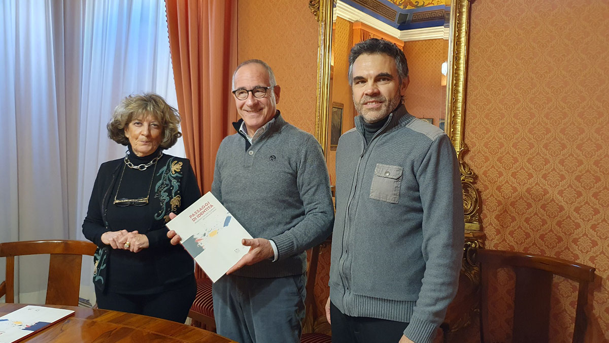 Sassari. Questa mattina, 11 dicembre, il sindaco Nanni Campus ha ricevuto dalle mani di Daniele Dore, direttore dell’Accademia “Sironi”, e della coordinatrice del Dipartimento di Comunicazione e Didattica dell’Arte Paola Pintus alcune copie del catalogo della mostra “Passaggi di identità. Mutamenti visivi dalla Quadreria del Comune di Sassari”, allestita a maggio a Palazzo Ducale.