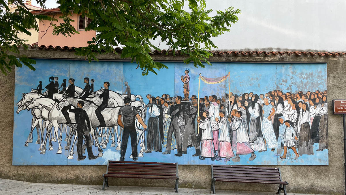 Tra i siti più emblematici figurano la Chiesa di San Lussorio, che conserva un ciclo pittorico di grande intensità, e Piazza Santa Croce, dove si trova il dipinto su tavola del 2006 commissionato dal comitato della leva 1975 in occasione delle celebrazioni per San Lussorio. Il legame tra arte e comunità si manifesta così in una dimensione corale, che restituisce il senso di appartenenza e partecipazione che ha sempre contraddistinto l’opera di Cano.