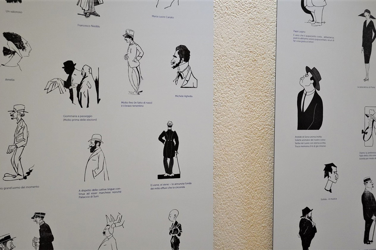 Tra le principali caricature di personaggi noti sono riconoscibili Enrico Costa (dal Massinelli e dal Burchiello), Pompeo Calvia e Salvator Ruju (fondatore del Burchiello). A questi si affiancano soggetti di colore locale, oggi dimenticati ma importanti per la Sassari degli anni Venti, riportati prevalentemente su un’altra testata di carattere popolare, la “Gaita” fondata da Antonino Saba.