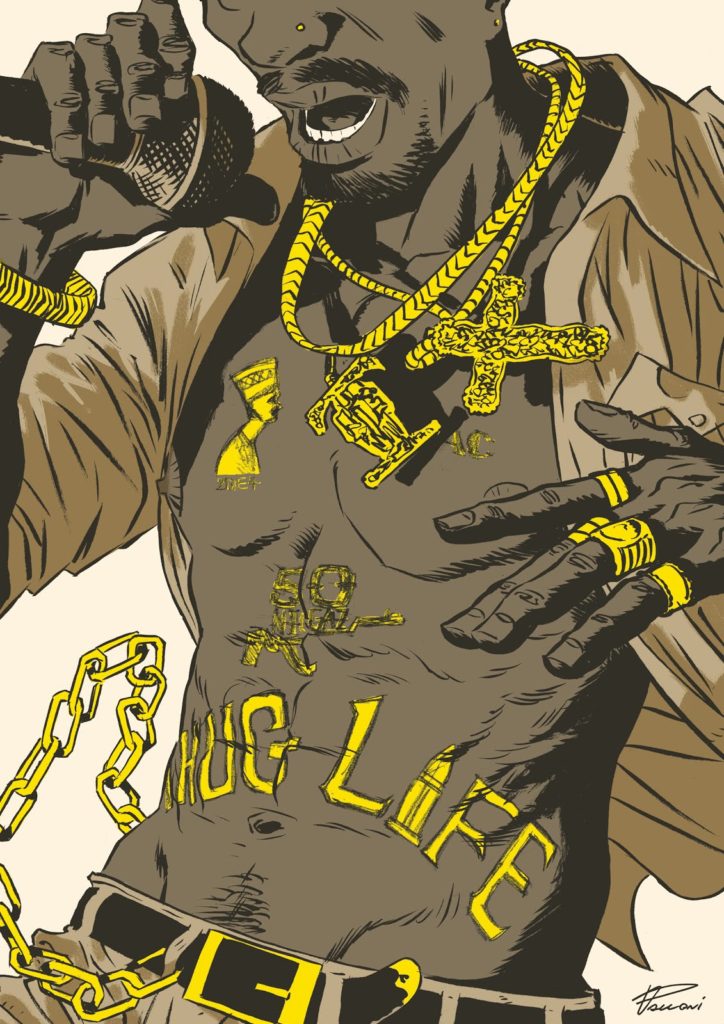 La graphic novel del duo di artisti, che combina con consapevolezza leggende metropolitane e informazioni biografiche, giunge a noi a venti anni di distanza dalla misteriosa e forse inevitabilmente violenta morte del rapper, vittima a soli 25 anni di un omicidio mai chiarito da parte di un enigmatico carnefice a Las Vegas il 13 settembre 1996, lasciando al mondo il ricordo di un artista maledetto, simbolo della cultura nera, e che, comunque sia, ha donato a tutti la capacità di lottare e imporsi sempre contro le ingiustizie.