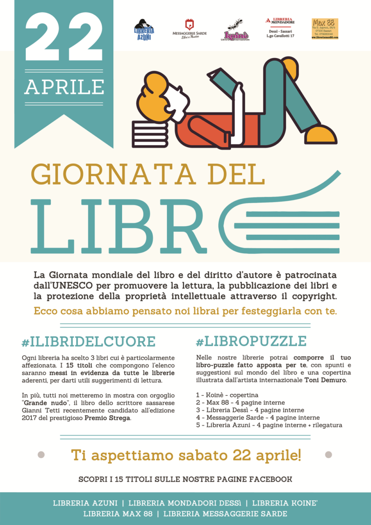 Come ogni anno, anche Sassari partecipa a questo importante evento e lo fa grazie alla collaborazione fra cinque librerie cittadine: Libreria Azuni, Libreria Dessì/Mondadori, Koinè, Max 88 e Messaggerie sarde.