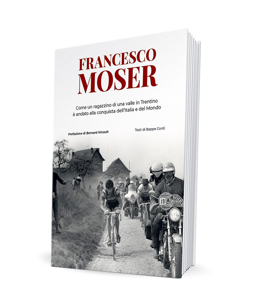 Il 19 giugno 2021 Francesco Moser, uno dei personaggi sportivi più popolari della nostra storia, ha compiuto 70 anni. Alla vita e alla storia di quest’uomo è stato dedicato il libro “Come un ragazzino di una valle in Trentino è andato alla conquista dell’Italia e del Mondo” con la prefazione di Bernard Hinault e curato da Beppe Conti, il giornalista sportivo che meglio di chiunque altro lo conosce, avendolo seguito in ogni gara durante tutta la sua lunga carriera. Innumerevoli le vittorie e i traguardi raggiunti: dal record dell’ora al Giro d’Italia, alle tre “Parigi-Roubaix” di fila ai campionati mondiali in pista e su strada.