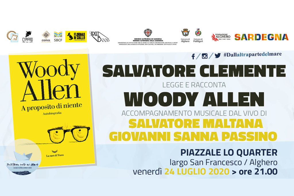 Domani, venerdì 24 luglio “Dall’altra parte del mare” torna ad Alghero, nel Piazzale Lo Quarter, con Salvatore Clemente che darà voce alle parole di Woody Allen con il reading “A proposito di niente” ispirato all’ultimo libro del regista e attore statunitense.