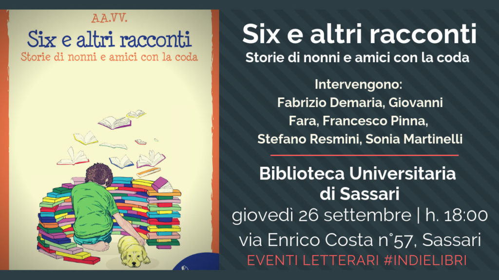 Per la prima volta a Sassari, giovedì 26 settembre 2019 alle ore 18:00, al piano terra della Biblioteca Universitaria in via Enrico Costa n° 57 (ex Ospedale civile Piazza Fiume), sarà presentata l’antologia “Six e altri racconti. Storie di nonni e amici con la coda” edito da Catartica Edizioni e contenente le opere selezionate nella seconda edizione del Premio Letterario “Tene Tene”. L’ingresso alla presentazione è libero.
