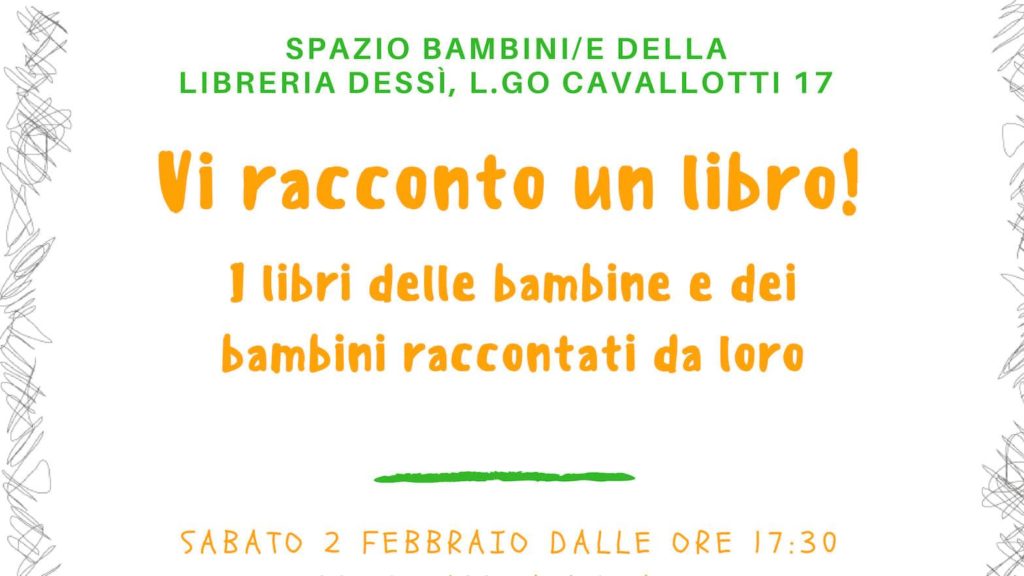 Vi racconto un libro, i libri delle bambine e dei bambini raccontati da loro, è un appuntamento periodico, promosso dalla Libreria Dessì in collaborazione con Il Colombre, uno spazio di condivisione di letture e libri dove i giovani lettori e le giovani lettrici sono protagonisti.