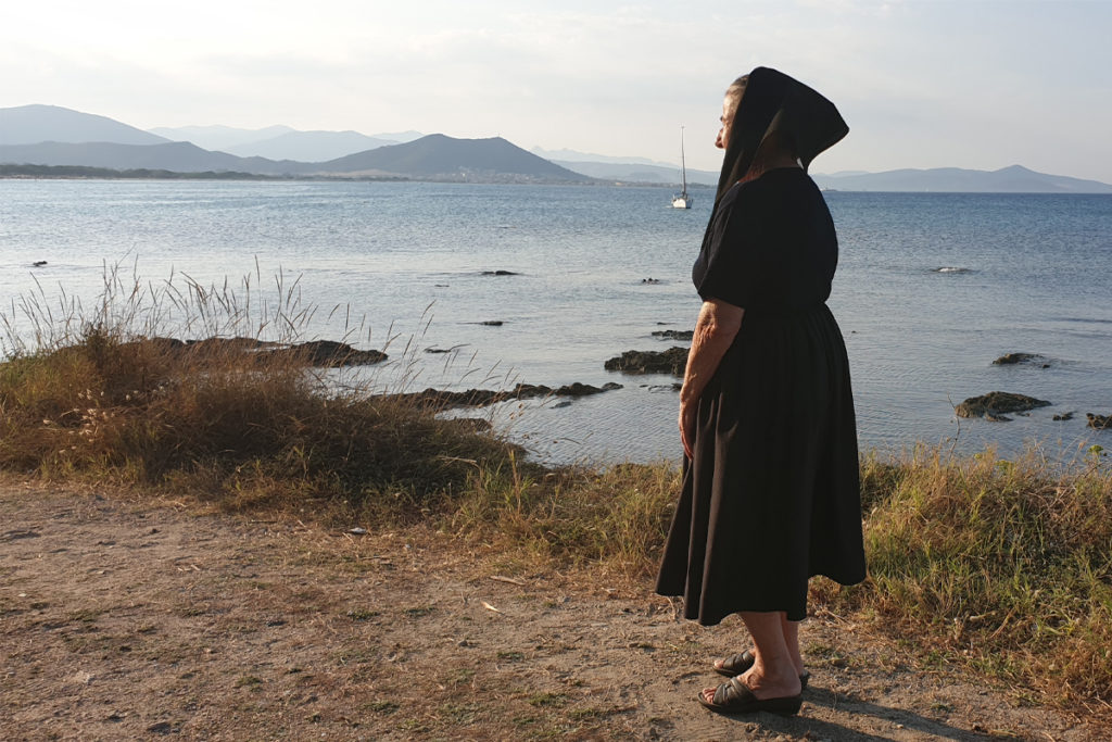 La doccia la faccio per prima per avere il tempo di andare sulla terrazza, e mentre il sole scende lasciando il posto all’ombra asciugo i capelli, è il terzo giorno che la noto: una signora tutta vestita di nero, il fazzoletto in testa a testimonianza della sua vedovanza e il grembiule sopra la gonna, tipico delle donne di questa zona.