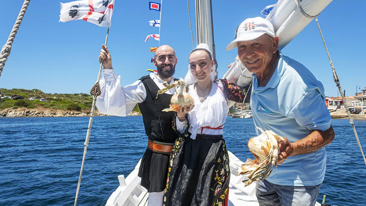 Un’insolita e affascinante incursione della tradizione agroalimentare sarda ha sorpreso gli ospiti del Nautic Event 2025 di Stintino: due giovani in abito tradizionale di Banari hanno solcato il mare a bordo dell’imbarcazione Sara, un fantastico gozzo a vela latina, portando con sé un cesto di cipolle dorate, ambasciatrici dell’imminente sagra che si terrà a Banari il 19 e 20 luglio.
