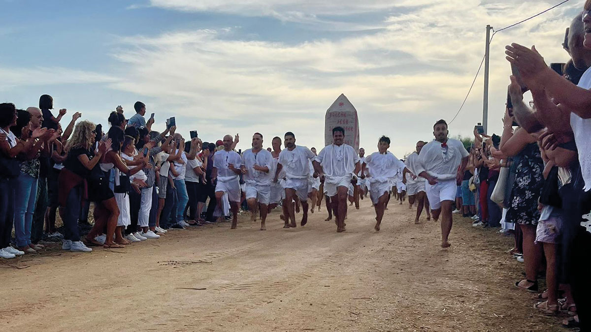 Domenica la giornata inizia alle 10:30 con la processione per le vie del villaggio. A seguire, la messa, che sarà celebrata anche nel pomeriggio alle 17:30, prima della partenza della Corsa degli Scalzi, prevista per le 18:30.