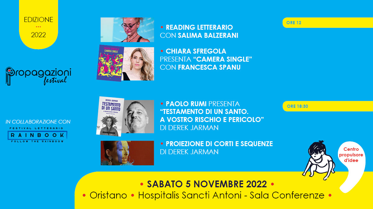 Sabato 5 novembre all’Hospitalis Sancti Antoni di Oristano la presentazione di “Camera single” di Chiara Sfregola e “Testamento di un santo. A vostro rischio e pericolo” di Derek Jarman