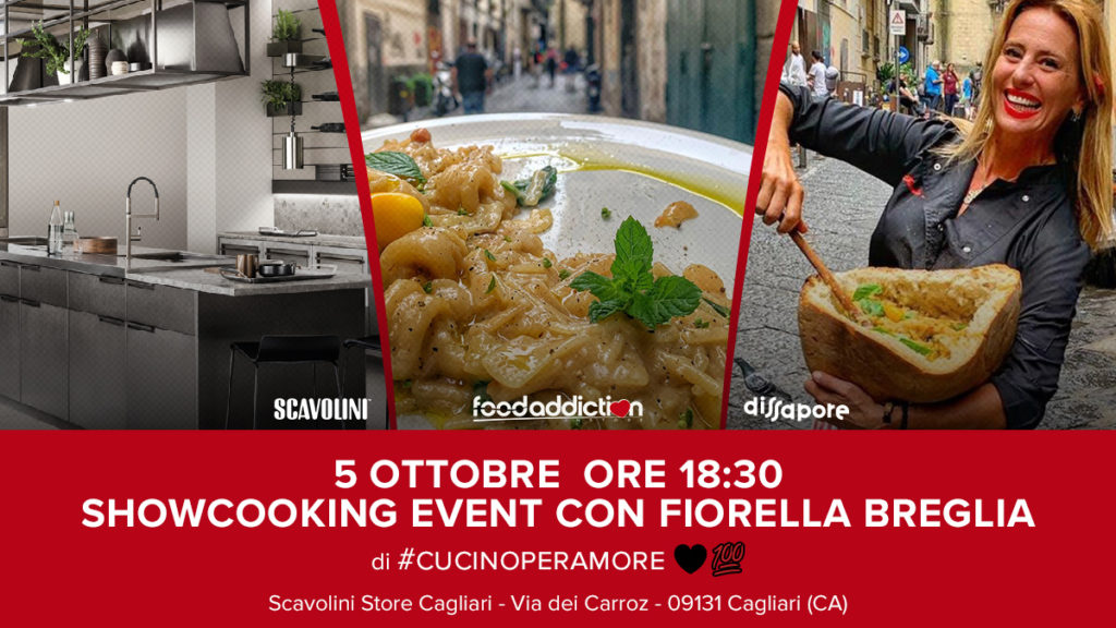 Domani, sabato 5 ottobre, a partire dalle 18:30 presso lo Scavolini Store Cagliari in programma uno show-cooking all’insegna delle differenti tradizioni gastronomiche italiane. La food artist di Dissapore Fiorella Breglia, porterà a Cagliari tutti i profumi e i colori della cucina campana, arricchita da quel tocco di creatività che da sempre la contraddistingue. Durante lo show-cooking gratuito, la creative Chef porterà in tavola le sue radici napoletane e tutta la sua esperienza culinaria per insegnare al pubblico come preparare una gustosa genovese di pasta e patate risottata. Dopo aver aiutato Fiorella nella realizzazione del piatto, gli ospiti potranno assaporarlo in un goloso assaggio.