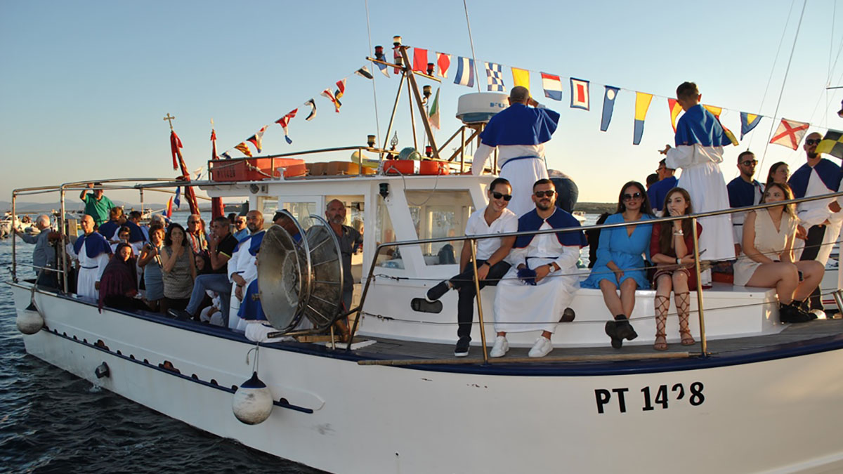 Alle 16:30, le funzioni religiose proseguiranno con la benedizione al monumento dei caduti e la suggestiva processione a mare. Un appuntamento, quest’ultimo, che vede ogni anno la presenza di numerose imbarcazioni, in particolare quelle tradizionali a vela latina. Questa è anche l’occasione per unire le comunità vicine che prendono parte alla processione, oltre che con gli amministratori del territorio, anche con gruppi folk e i portatori delle bandiere dedicate ai santi delle borgate.