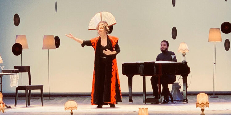 La pièce – nella mise en scène di Roberto Tarasco, con la traduzione di Edoardo Erba e con i costumi di Francesca Di Giuliano (fonico Gianluca Meda, macchinista Raffaele Basile, aiuto regista Rachele Minelli), produzione di Pierfrancesco Pisani e Isabella Borettini per Infinito Teatro e Argot Produzioni – trae spunto dalla vera storia di Florence Foster Jenkins. Il soprano statunitense, celebre soprattutto per la sua mancanza di doti canore, riuscì comunque a esibirsi alla prestigiosa Carnegie Hall di New York il 25 ottobre del 1944, per un recital attesissimo, i cui biglietti andarono esauriti con settimane di anticipo. Una figura affascinante per il suo coraggio e la sua determinazione nell’inseguire un sogno: la sua passione e il suo entusiasmo, la sua apparente imperturbabilità di fronte alle critiche, trionfano sulle spietate regole del mondo dello spettacolo e perfino sui canoni rigorosi della musica d’opera. Neppure la sua scarsa intonazione, la mancanza di senso del ritmo, la difficoltà nel tenere una nota, spesso sottolineate dai suoi detrattori, riescono a fermarla o a ridurla al silenzio. La dama dell’alta società, amante del belcanto e animatrice della vita culturale, era una autentica diva, dalle mises insolite e stravaganti, applaudita e apprezzata sia pure nella ristretta cerchia delle sue amiche e ammiratrici, nonché socie del suo club, poiché saggiamente preferiva limitare le sue esibizioni davanti a un pubblico selezionato, come per il suo recital annuale nella sala da ballo del Ritz-Carlton di New York.