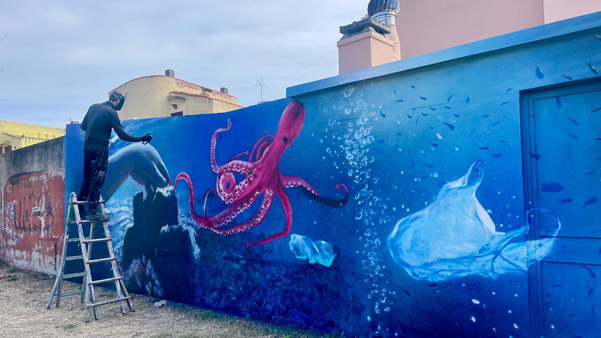 Il murale realizzato da Manu Invisible al Margine Rosso di Quartu
