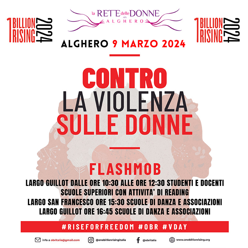 Ad Alghero torna One Billion Rising per dire NO alla violenza sulle donne. Il flash mob, nel decennale di attività sociale è organizzato dalla Associazione di Promozione Sociale La Rete delle Donne Alghero e dal Comitato AREA Sant’Agostino.