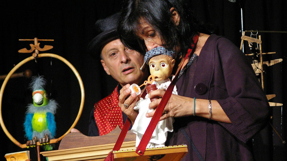 Un intrigante e originale spettacolo di burattini e marionette a filo ideato e “animato” da Agostino Cacciabue e Rita Xaxa sulle avventure e i talenti di «una simpatica famiglia di scimmiette» che vivono e lavorano sotto il tendone: per la gioia e il divertimento del pubblico ecco «Max l’acrobata con le sue virtuosistiche evoluzioni, Ginger che danza con pattini a rotelle, Casimiro il giocoliere in equilibrio sul suo monociclo e il mago Gustavo che stupisce tutti con le sue illusioni».