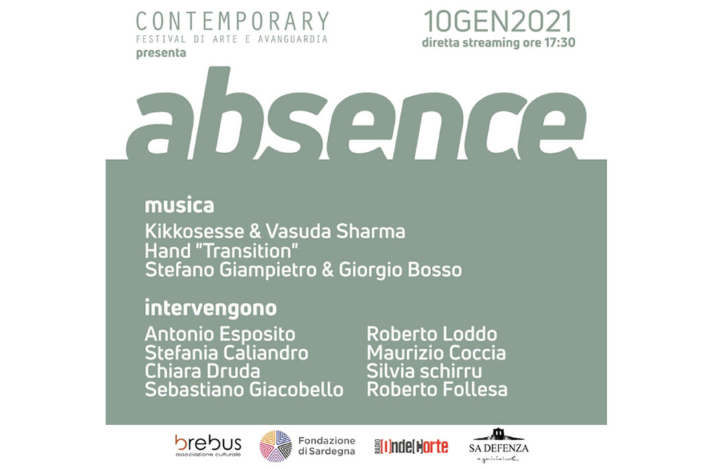 Il Festival Contemporary, manifestazione biennale d’arte d’avanguardia organizzata dall’associazione Brebus che si svolge a Donori a fine estate, organizza domenica 10 gennaio alle 17:30 un incontro online in diretta dalla pagina Facebook del Contemporary Festival dal titolo “Absence”.