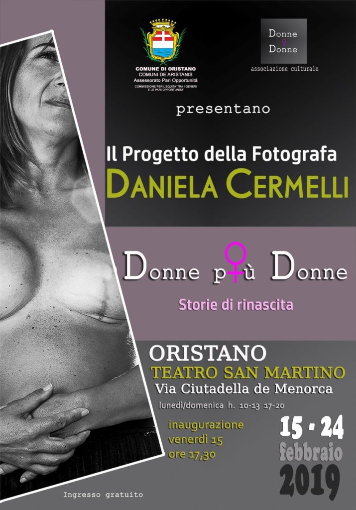 Venerdì 15 febbraio, ore 17:30, al Teatro San Martino in via Ciutadella de Menorca a Oristano sarà inaugurata la mostra della fotografa Daniela Cermelli “DONNE + DONNE, storie di rinascita”.