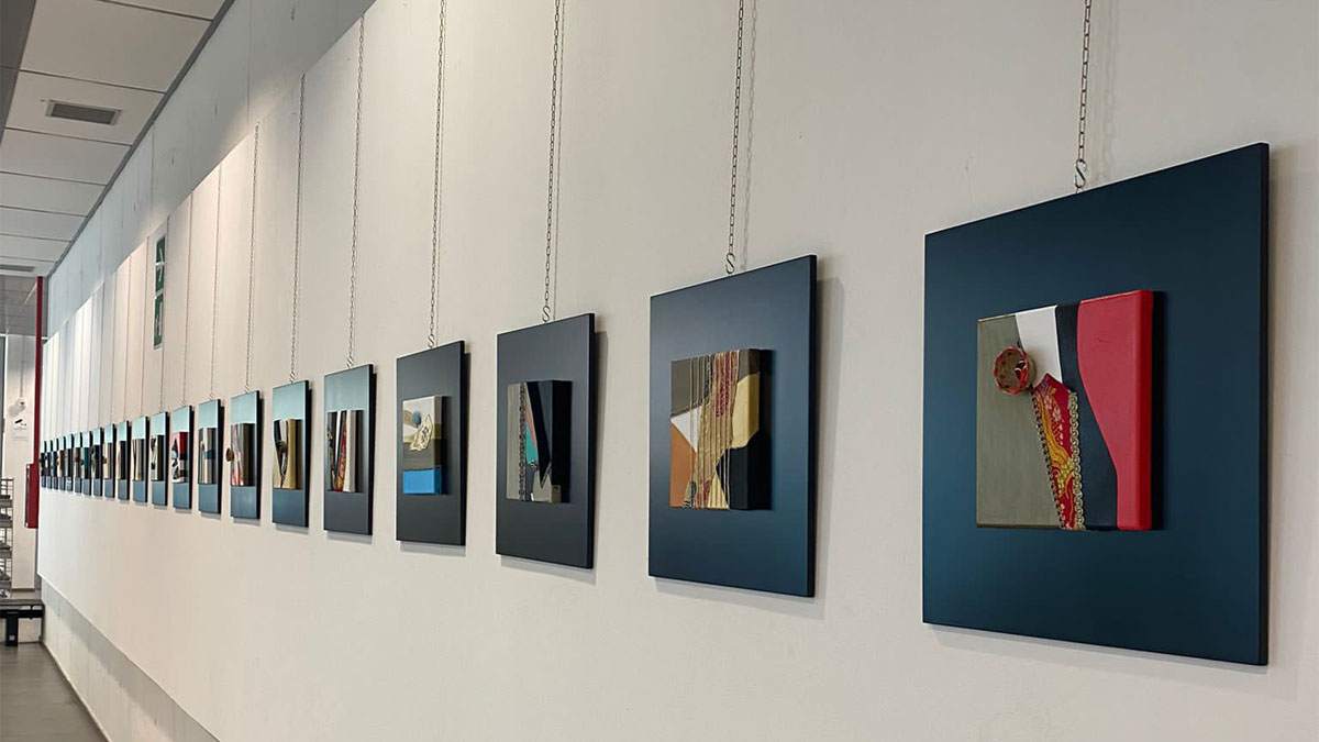 Nelle 22 opere originali 40 x 40 cm esposte alla Mediateca – a cui si aggiungono 3 tele di grandi dimensioni – si percepiscono fortemente i richiami alla tradizione e alla cultura della Sardegna, che si traducono in un nuovo genere “sardo” rielaborato tanto nelle tonalità quanto nella scelta dei supporti e dei materiali.