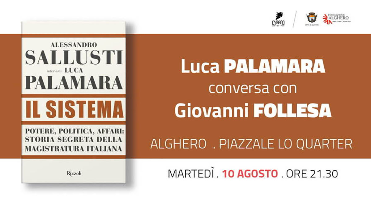Luca Palamara, l’ex magistrato e ex membro del Consiglio Superiore della Magistratura che ha fatto esplodere lo scandalo sulla magistratura italiana, sarà ad Alghero (martedì 10 agosto ore 21:00 Piazzale Lo Quarter) per presentare, insieme al giornalista Giovanni Follesa, il libro/intervista realizzato con Alessandro Sallusti “Il Sistema. Potere, politica, affari: Storia segreta della magistratura italiana” (Rizzoli).