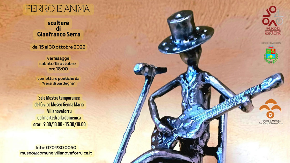 Sabato 15 ottobre, alle ore 18, nella Sala Mostre Temporanee del Museo Archeologico di Villanovaforru, verrà inaugurata “Ferro e Anima”, personale di Gianfranco Serra. La mostra, a ingresso gratuito, sarà visitabile sino al 30 ottobre 2022.
