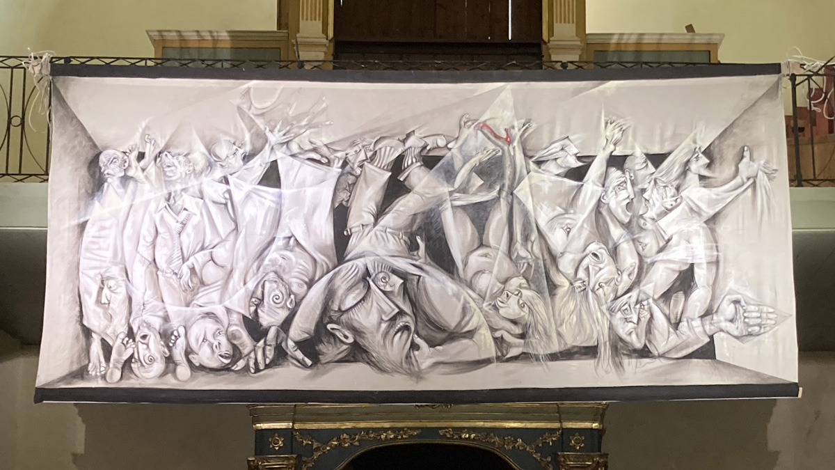 La grande tela “La fossa comune” ispirata all’eccidio di Bucha in Ucraina insieme a trentadue crocifissi disegnati su carta antica e ai ritratti dei Papi Francesco e Giovanni Paolo II, sono le opere del noto artista toscano che hanno dato corpo alla mostra esposta tra marzo e aprile nell’antica chiesa del quartiere storico della Marina. Le opere di Lorenzo D’Andrea rappresentano un monito contro le atrocità delle guerre, racchiudono un messaggio di pace e speranza, un invito a recuperare quel senso di solidarietà e fraternità umana che si costruisce con il dialogo, il rispetto e la comprensione reciproca, come auspicato nel documento firmato nel 2019 da Papa Francesco e dal Grande Imam di Al-Azhar Sheikh Ahmed El-Tayeb “per diffondere la cultura della tolleranza, della convivenza e della pace”.