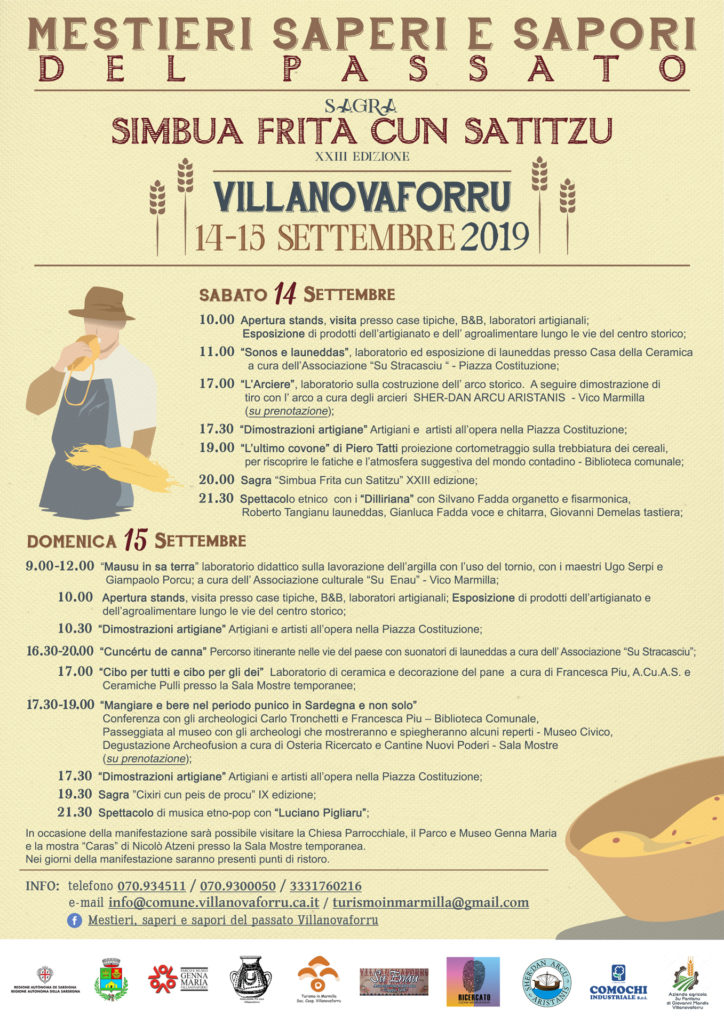 I giorni 14 e 15 Settembre 2019 il Comune di Villanovaforru, l’Associazione Turistica “Pro Loco” e la Turismo in Marmilla Soc. Coop, in collaborazione con le associazioni e le strutture private ricettive e produttive di Villanovaforru, organizzano la quattordicesima edizione della manifestazione “Mestieri, saperi e sapori del passato”.