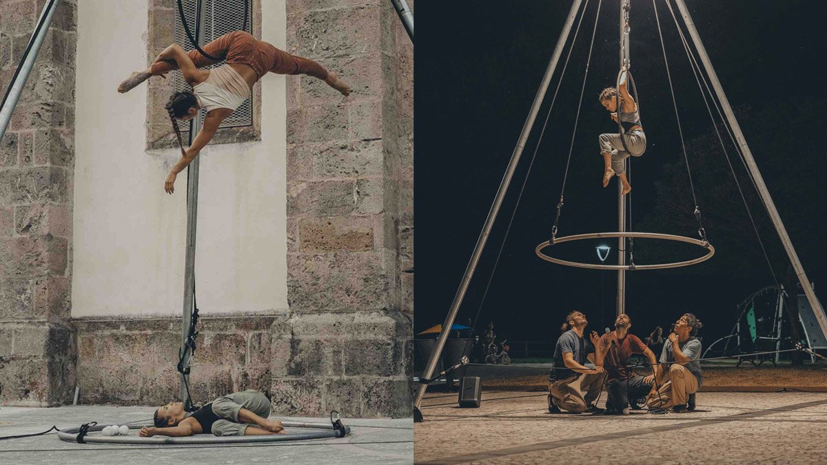 La compagnia Collettivo 6tu ha esplorato l’universo artistico e creativo di Italo Calvino partendo dalla lettura dei suoi saggi e romanzi, unendo e concatenando storie diverse ma accomunate tra loro. Gli artisti Emmanuel Caro, Sara Frediani, Rachele Grassi, Alessandro Campion e Carlos Rodrigo Parra Zavala raccontano con il linguaggio e la grammatica circense diverse sfumature, tradotte in gesti atletici e attitudini dei personaggi, che caratterizzano le principali visioni del mondo che troviamo negli scritti di Calvino. All’interno dello spettacolo prendono vita diversi riadattamenti della giocoleria in uno scenario che vuole richiamare l’ambivalenza tra cielo e terra, temi molto vividi tra le pagine di Calvino.