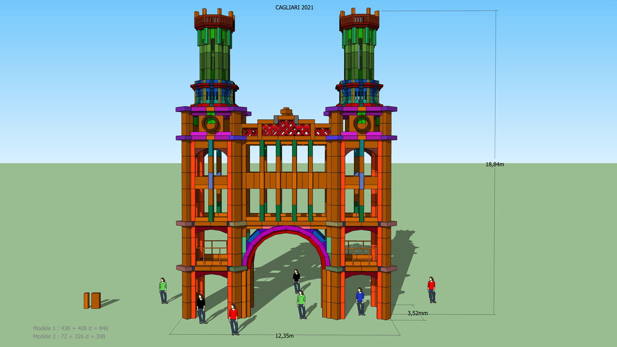 Per Cagliari il suo progetto si ispira agli elementi architettonici del Palazzo Comunale e viene costruito collettivamente venerdì 15 ottobre dalle ore 10:00, per tutta la giornata in Piazza del Carmine, dopo un workshop aperto a tutti di ritaglio e assemblaggio delle scatole a Sa Manifattura. Gli orari del workshop sono dalle ore 09:00 alle 13:00 e dalle 16:00 alle 19:00, fino al 14 ottobre, senza obbligo di frequenza.