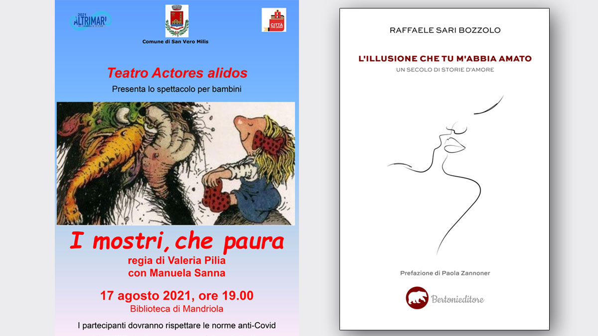 Il giorno successivo, 18 agosto, alle ore 19:00 alla Biblioteca di Mandriola ci sarà la presentazione del libro “L’illusione che tu m’abbia amato” di Raffaele Sari Bozzolo per le edizioni Bertoni. Dialogherà con l’autore, Massimiliano Monaco. Un secolo d’amore, così recita il sottotitolo, un percorso attraverso iconiche storie d’amore per ripercorrere le vicende del ‘900 con una prospettiva del tutto nuova e particolare.