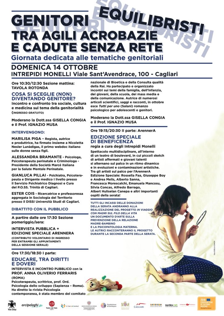 Un’intera giornata dedicata alle tematiche genitoriali, con la partecipazione di esperti e studiosi e un finale all’insegna dello spettacolo: domenica (14 ottobre), a Cagliari, il teatro Intrepidi Monelli (al civico 100 di viale Sant’Avendrace) ospita “Genitori equilibristi tra agili acrobazie e cadute senza rete”, appuntamento promosso dalla cooperativa Vox Day – in collaborazione con l’associazione L’Eptacordio, Il Club dei genitori e la compagnia Intrepidi Monelli – a suggello del Karel Music Expo (dopo il trittico di serate della settimana scorsa all’ex Manifattura Tabacchi) edizione numero dodici: un’edizione che, sotto il titolo “In nome del figlio”, completa il percorso tematico aperto dal festival nel 2016 “In nome del padre” e proseguito l’anno scorso “In nome della madre”.