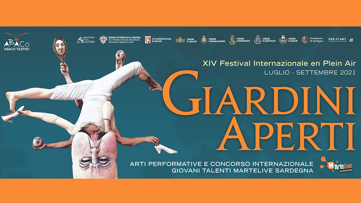 Si alza il sipario sulla XIV edizione del Festival Multidisciplinare Internazionale “Giardini Aperti” / Arti performative en plein air organizzato da Abaco Teatro in collaborazione con Impatto Teatro – nell’ambito del progetto INTERSEZIONI 2021 / rete di festival senza rete a cura di Fed.It.Art Sardegna – ventotto appuntamenti fra teatro e letteratura, musica e nouveau cirque in cartellone dal 17 luglio al 2 settembre tra Cagliari, Maracalagonis e Torre delle Stelle, Monserrato, Quartucciu, Quartu Sant’Elena e Sanluri e poi mostre e installazioni, laboratori e incontri con gli autori.