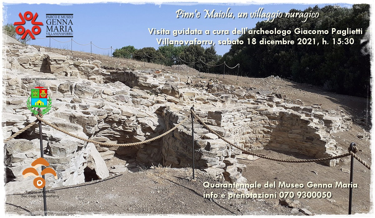 Prendono avvio il 18 dicembre 2021 le manifestazioni per il quarantennale del Museo Archeologico Genna Maria di Villanovaforru, aperto nel 1982 e primo museo archeologico civico della Sardegna. Il primo appuntamento sarà dedicato alla scoperta del villaggio nuragico di Pinn’e Maiolu, oggetto di una recente campagna di scavo che ha portato alla luce diversi ambienti d’uso domestico, associati a un apparato di canalette di regimentazione dell’acqua. Guida d’eccezione sarà il direttore del Parco e Museo Genna Maria, l’archeologo Giacomo Paglietti, che ha condotto gli ultimi scavi e che illustrerà il sito, sul quale si è fondato l’attuale paese di Villanovaforru.