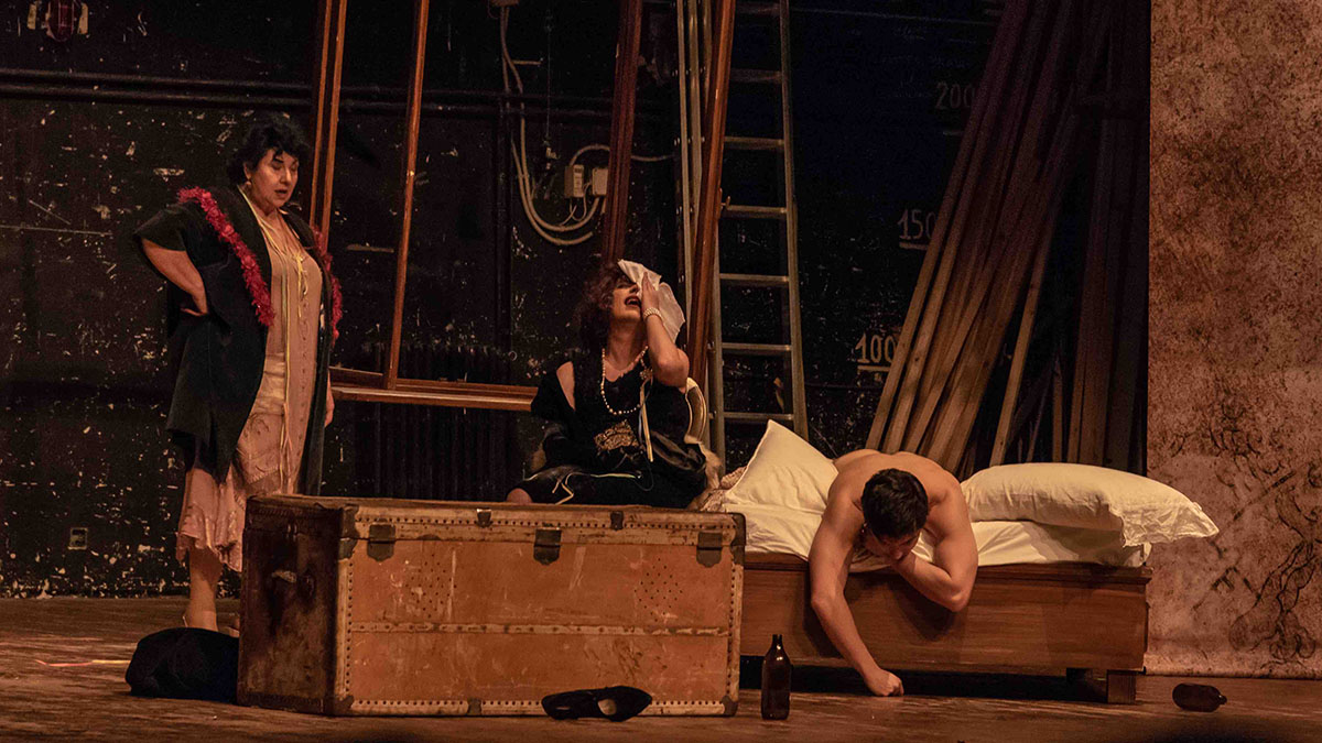 “Persone Naturali e Strafottenti” – con costumi di Giulia Pagliarulo e disegno luci di Daniele Manenti, Make Up Artist Vincenzo Verdesca, direttrice di scena Claudia Tagliaferro, aiuto-regia Giuditta Vasile (produzione Altra Scena e distribuzione Stefano Pironti – Chiediscena) – mostra un paesaggio urbano ben diverso dalla tradizionale immagine da cartolina, mettendo l’accento sulle esistenze travagliate di creature “notturne”, donne e uomini, travestiti o trans, prostitute e omosessuali, simboli di un amore “proibito”, tra odio e rancore, voglia di riscatto, illusioni perdute e desideri irrealizzabili. Tra l’euforia dei festeggiamenti e i buoni propositi per l’avvenire, in un appartamento si consumano i rituali domestici di una convivenza difficile, con l’ennesima lite tra la padrona di casa, Donna Violante, ex serva in un bordello e il travestito Mariacallàs, figura chiave della vicenda intorno a cui ruotano gli altri personaggi: Fred, uno studente gay alla ricerca della sua identità e Byron, uno scrittore nero che vorrebbe distruggere il mondo per vendicare le antiche umiliazioni. Creature stravaganti, piene di passione e un po’ sopra le righe, che incarnano l’anima più nascosta, ma non per questo meno autentica, della città: le loro esistenze sono segnate dalla paura e dal dolore, dalla necessità di difendersi e lottare, giorno dopo giorno, per non soccombere, in un tentativo spesso vano di uscire dall’ombra e compiere una sorta di ascesa sociale, per conquistare del proprio posto nel mondo.