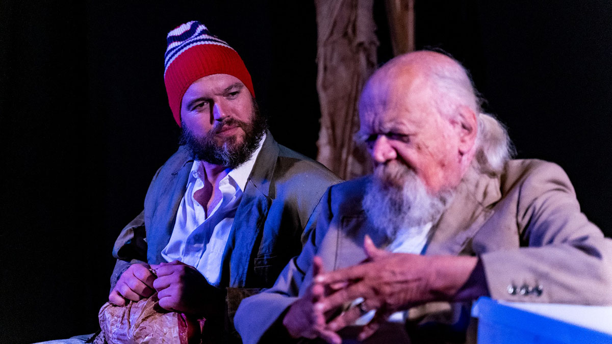 L’opera, in scena alle 18 per gli studenti (biglietti già esauriti) e alle 21, vede protagonisti due clochard, bohemien e figli della notte, che si parlano addosso scambiandosi provocazioni reciproche alla ricerca di un destino sempre in bilico. Un poeta e un vagabondo ignorante (ma non per questo stupido), si sfogano cercando di trovare le risposte a dei perché di fronte a una esistenza matrigna e ironicamente beffarda. Un affresco dai colori vivaci, all’interno di una cornice assurda e sorprendente, dentro (e fuori) la vita dei due protagonisti.