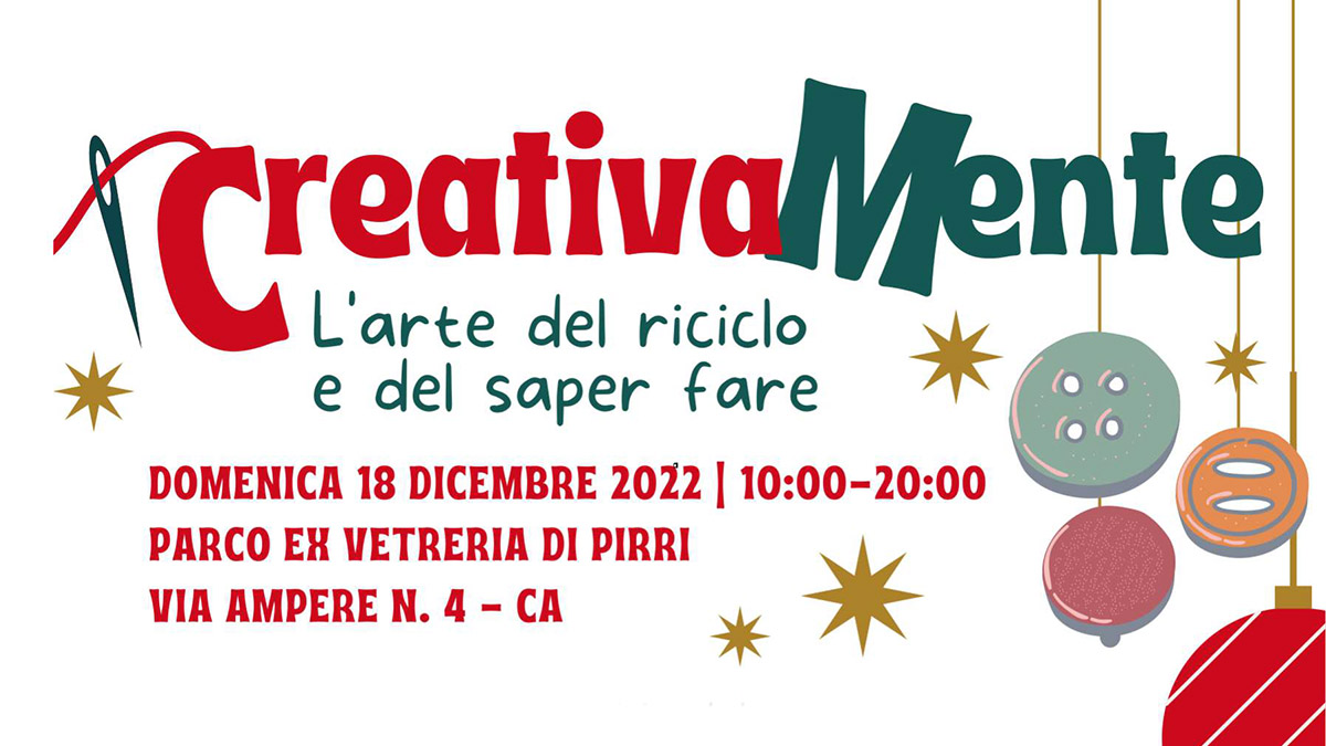 Cagliari. Domenica 18 dicembre nel Parco dell’Ex Vetreria di Pirri dalle 10:00 alle 20:00 si svolgerà “CreativaMente. L’arte del riciclo e del saper fare” una manifestazione organizzata da Mesa Noa Food Coop che proporrà laboratori esperienziali, attività manuali e creative, momenti di riflessione sulle buone pratiche dell’economia circolare.