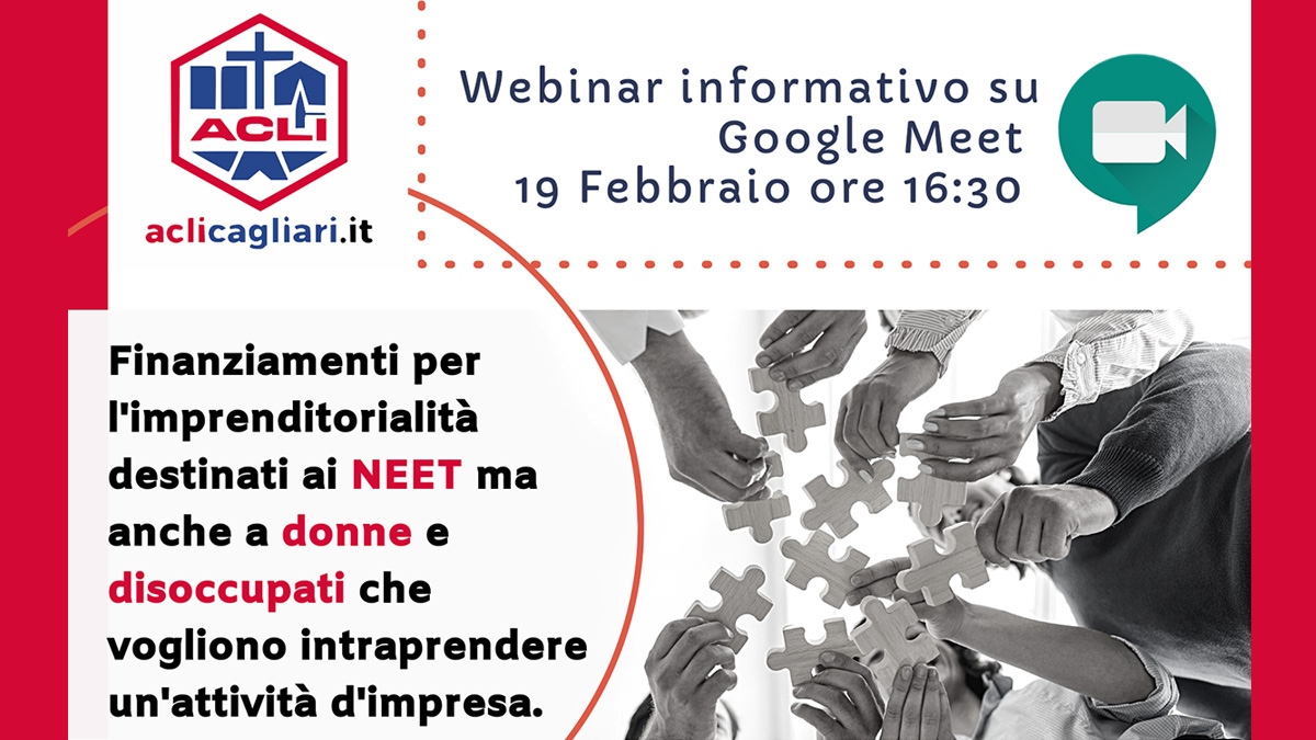 Venerdì 19 febbraio a partire dalle 16:30, le Acli provinciali di Cagliari organizzano un webinar gratuito per approfondire gli aspetti principali questa misura, che sarà attiva dal 22 di febbraio, e che ammette la presentazione di progetti sviluppati in tutti i settori del commercio, anche in franchising, della produzione e fornitura di beni e servizi. Sono escluse le attività legate alle lotterie, alle scommesse e alle case da gioco.