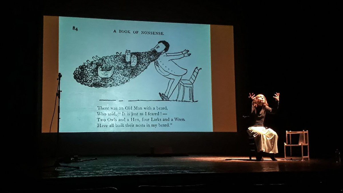 Lo spettacolo, originale divertissement che non rinuncia al kitsch, è diviso in tre sezioni: “Le variazioni”, “Le antifilastrocche” e “Le tragedie”, con una pre-azione, un intermezzo e un commiato. Il reading è arricchito da slide, video, interventi audio, che costruiscono una rete capace di catturare sensi, suoni, riferimenti, suggestioni. Insieme alla produzione poetica dell’autore, allo spettacolo contribuiscono, come evocati nel corso di una trance poetica, i poeti futuristi, Petrolini, Shakespeare, Toti Scialoia, Vittorio Gassman, il padre della poesia sonora Arrigo Lora Totino. (info e prenotazioni: [email protected])