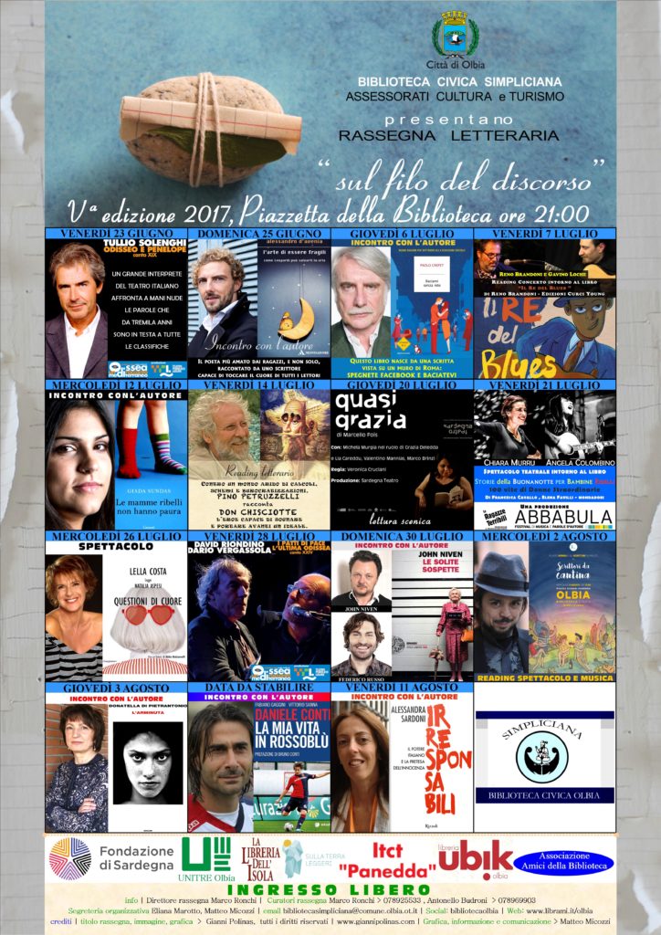 La Rassegna Letteraria “Sul Filo del Discorso” – edizione 2017 – è realizzata con il contributo della Fondazione di Sardegna.