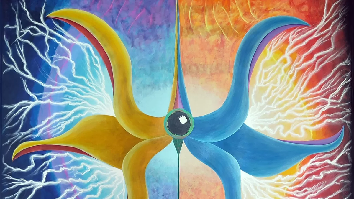 Elemento centrale della ricerca artistica di Rugiada Cadoni è il Phare-One, un totem dalla simbologia complessa che funge da ponte tra il mondo naturale e quello soprannaturale. Rappresentato come un fiore dal lungo stelo con sette petali, corrispondenti ai chakra, custodisce al centro una sfera nera che osserva come una pupilla. Questo motivo ricorre nelle opere come strumento per indagare la condizione umana, il suo rapporto con l’universo e l’armonia tra microcosmo e macrocosmo, secondo il principio ermetico “come in alto così in basso”.