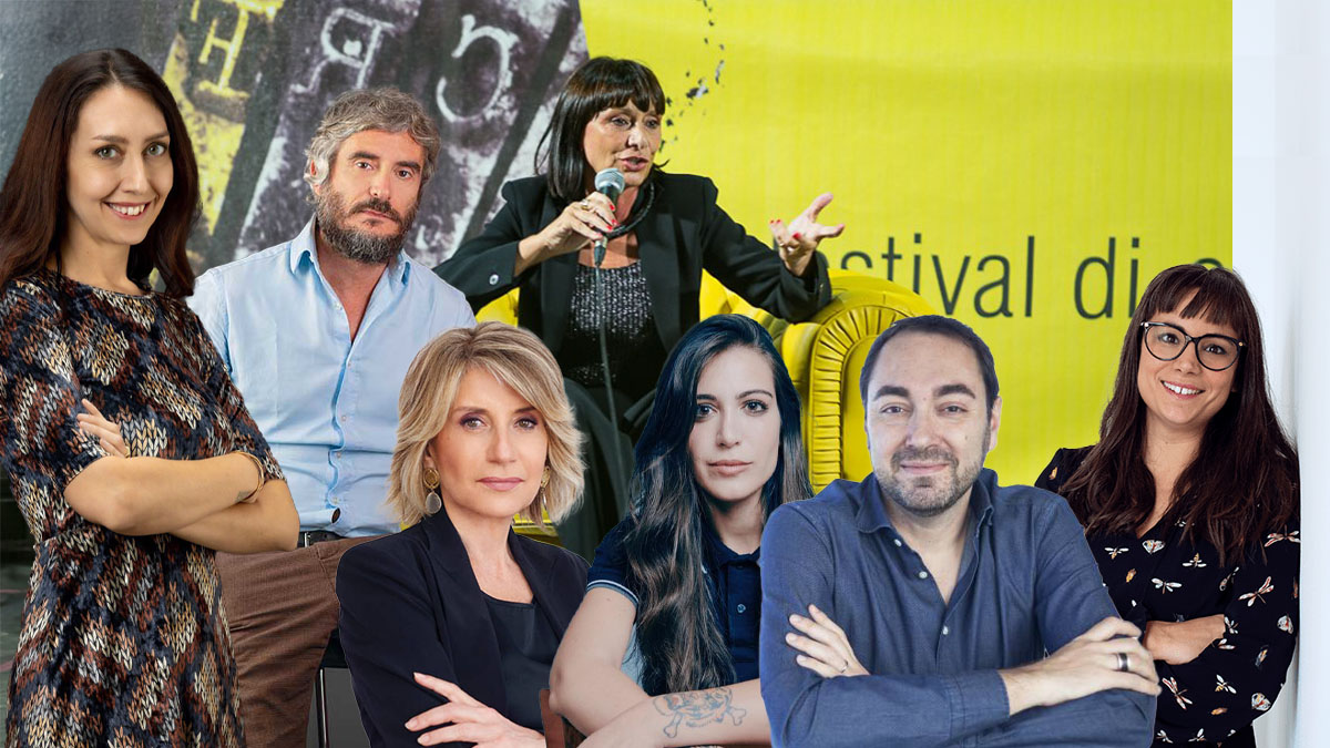 Da sinistra: Livia Sambrotta, Federico Palmaroli, Tiziana Ferrario, Piera Carlomagno, Valetina Mira, Nando Lopez e Francesca Safina