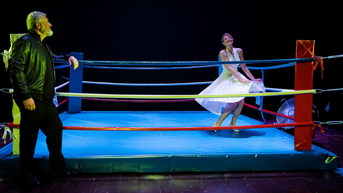 Una storia di coppia dove il ring, montato al centro della scena, diventa parte integrante della casa e dove si ripropongono le ansie, i respiri e le pause che a volte richiamano e ricordano la storia intensa di un incontro di boxe.