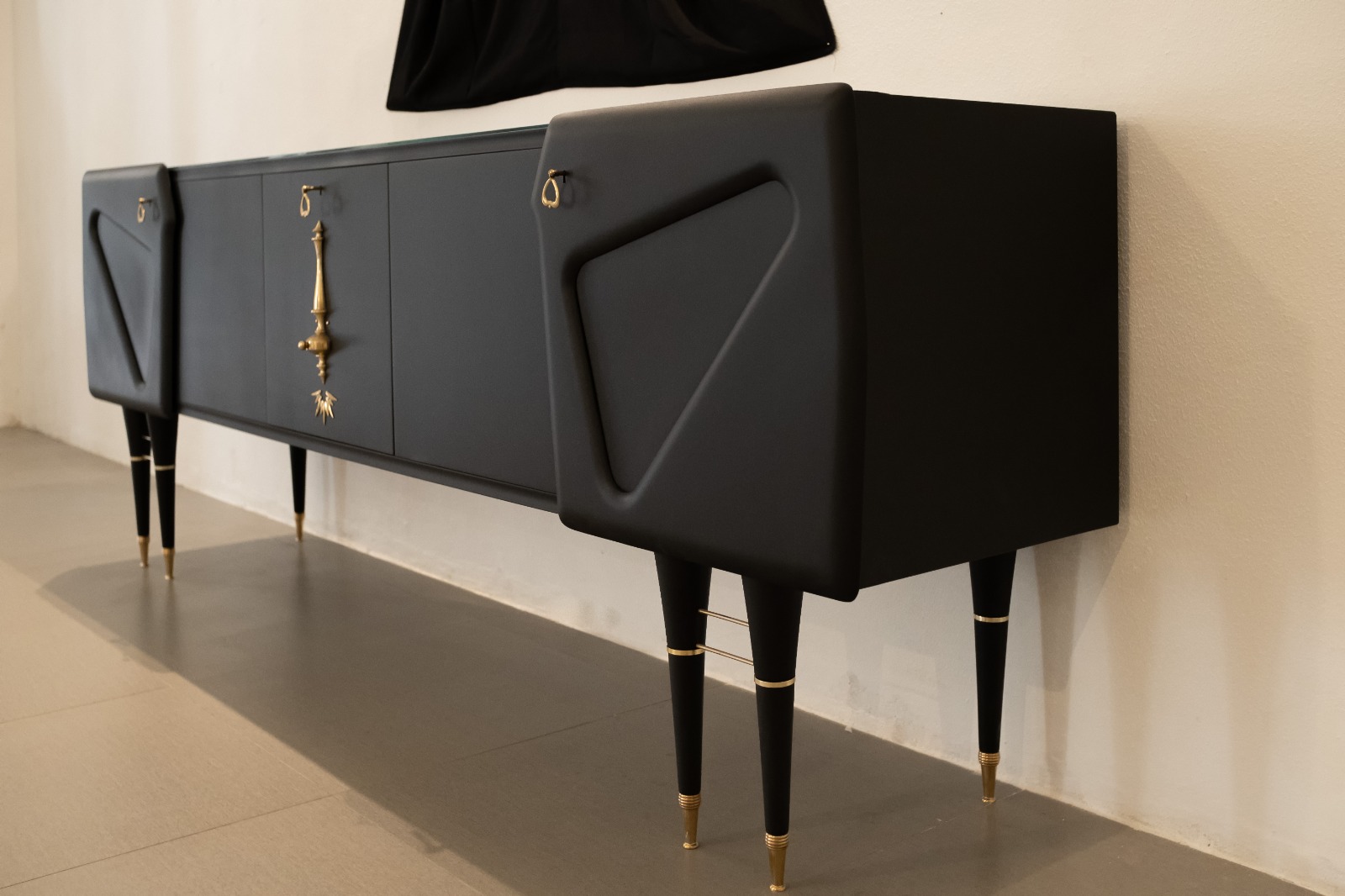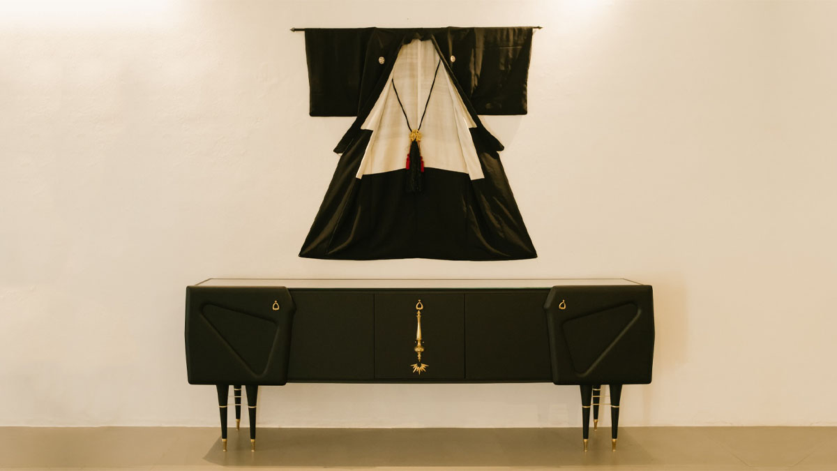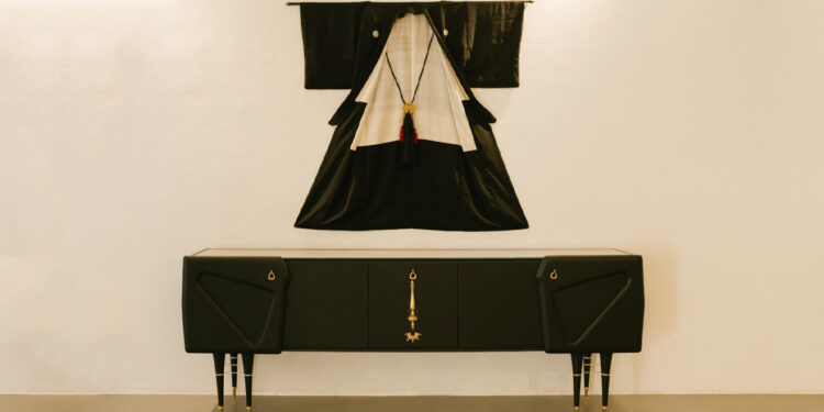 La prima collezione di “Cassetto 108” rilegge le linee eleganti streamline del mobilio anni ’50 valorizzandole con un elegantissimo nero opaco, vellutato al tatto, e decorandole con ironici elementi di ottone lucido e dorato. Così reperti di lampade e un’antica Polena ritrovano una giustapposizione che sembra quasi naturale appartenga alla loro vita. Pezzi che provengono da svariati luoghi si ritrovano insieme in oggetti unici che pare siano stati pensati così. Le superfici vellutate di Attanasio ritrovano un dialogo sofisticato coi tessuti e le stoffe di Mura. I rossi bordeaux e i delicati toni pastello si incontrano nelle decorazioni japonaiserie e anche qui un improbabile incontro si rivela un matrimonio felice. Attanasio e Mura recuperano la memoria degli oggetti e mescolano insieme tecniche, atmosfere e sensazioni tattili con un giusto mix di ironia ed eleganza.