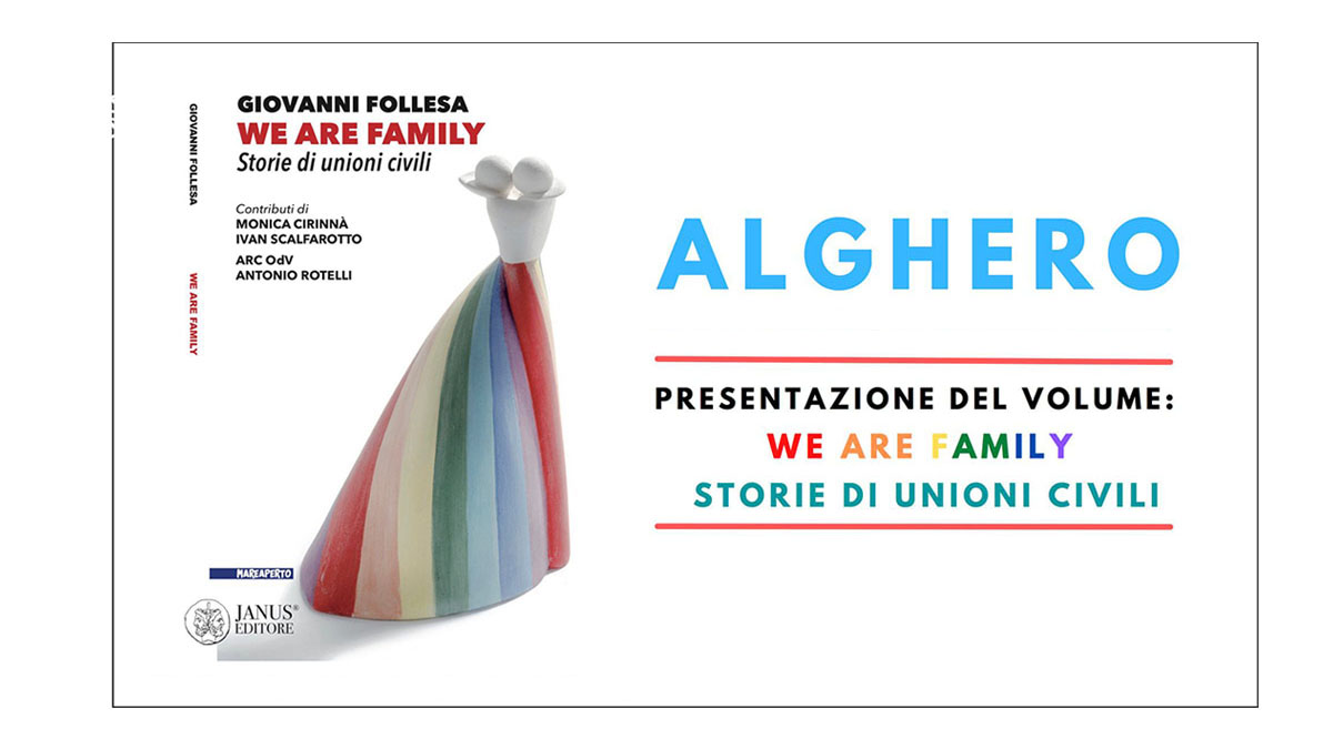 Giovedì 24 febbraio 2022, alle ore 16:30, Giovanni Follesa sarà ad Alghero, ospite dell’Università delle Tre Età, per presentare il suo libro “We are family. Storie di unioni civili” recentemente pubblicato da Janus editore. L’appuntamento è organizzato dalla Libreria Cyrano in collaborazione con l’Università delle Tre Età di Alghero.