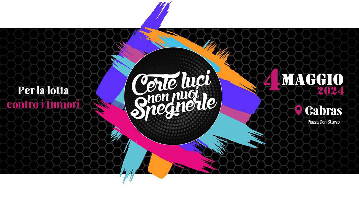 Torna l’appuntamento con la musica di “Certe luci non puoi spegnerle”, il grande evento benefico organizzato dall’omonima associazione culturale no profit, con il patrocinio del Comune di Cabras e in collaborazione con associazioni che si occupano di prevenzione e assistenza ai pazienti oncologici, Airc, Lilt, Komunque Donne, Le Belle Donne, Abbracciamo un sogno, Nastro Viola.