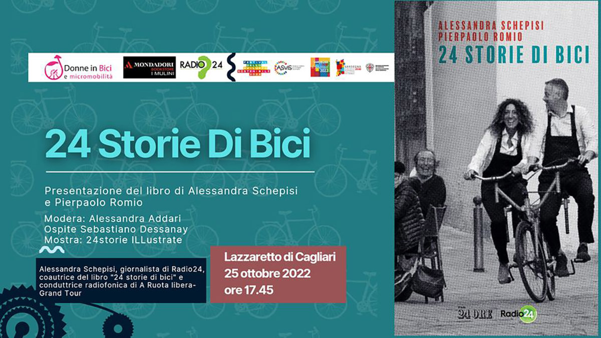 Cagliari. Martedì 25 ottobre alle ore 17:45 presso la sala convegni del Lazzaretto l’associazione Donne in bici e Micromobilità organizza la presentazione del libro “24 Storie di Bici” edito dal Sole 24 ore alla presenza degli autori Alessandra Schepisi e Pierpaolo Romio. Si tratta di un viaggio nel mondo delle due ruote, frutto di una grande passione degli autori.