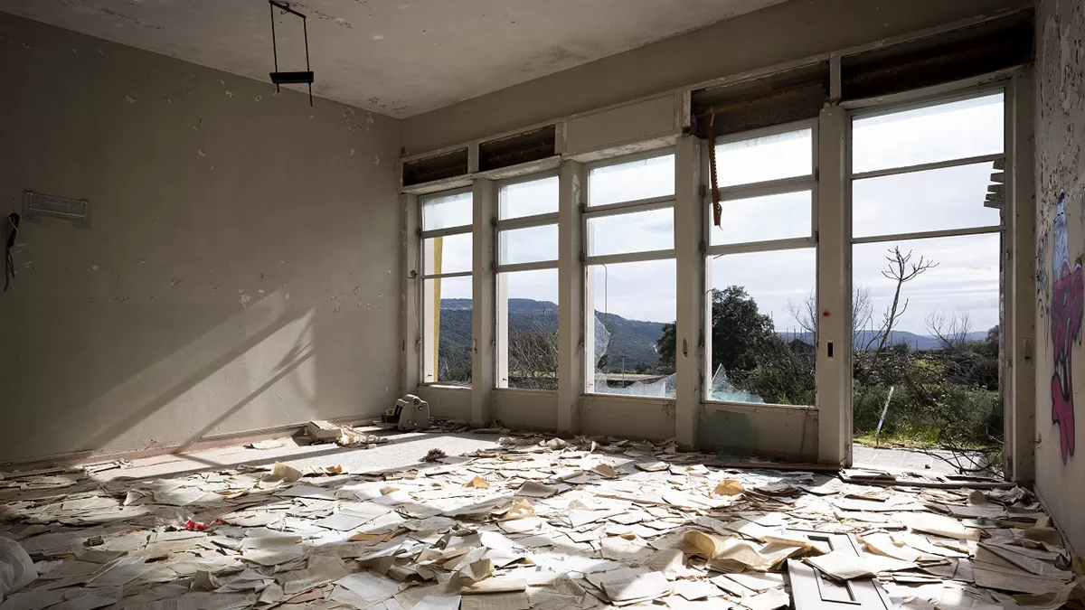 Il punto di partenza di Centola, fotografo professionista con un’esperienza ventennale (è autore, tra l’altro, di un reportage sul cementificio del Vajont e della serie fotografica sull’area ex Falck a Sesto San Giovanni- Milano), è la dicotomia “scuole abbandonate e abbandono nelle scuole” che funge da pretesto per un viaggio in Sardegna, tra i luoghi deputati a rispondere a un bisogno collettivo, ora abbandonati. Nei 22 scatti proposti ecco allora quella che fu la colonia estiva per bambini di Funtanazza (Arbus), la scuola che sorgeva nell’area mineraria di San Leone, (Capoterra), il sanatorio di Giorgino (Cagliari), sino all’ex orfanotrofio di Oristano, o all’antica tipografia di Cagliari.