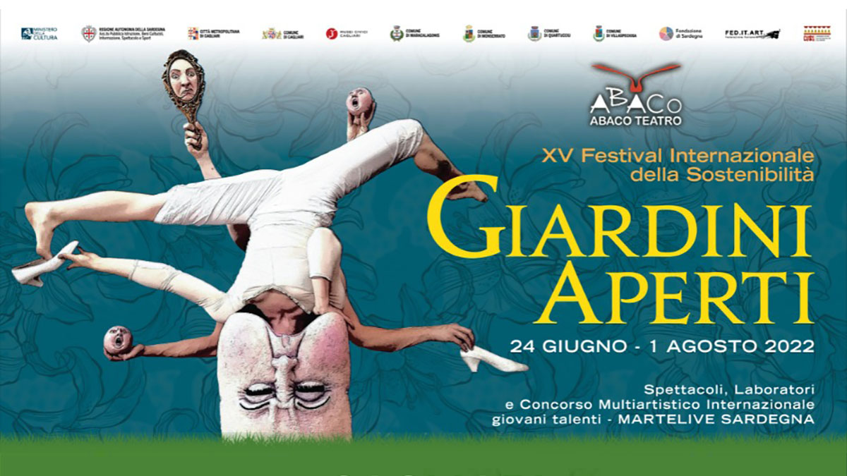Visioni d’arte incastonate in uno scenario naturale con la XV edizione di “Giardini Aperti” / Festival Internazionale della Sostenibilità e su MArteLive Sardegna 2022 / Concorso Multiartistico Internazionale per Giovani Talenti organizzati da Abaco Teatro in collaborazione con Impatto Teatro con la direzione artistica di Rosalba Piras tra Cagliari, Maracalagonis e Torre delle Stelle, Monserrato, Quartucciu, Quartu Sant’Elena e Villaspeciosa, con il patrocinio e il sostegno della Regione Sardegna e dei Comuni interessati, con il contributo della Fondazione di Sardegna e con il patrocinio della Città Metropolitana di Cagliari.