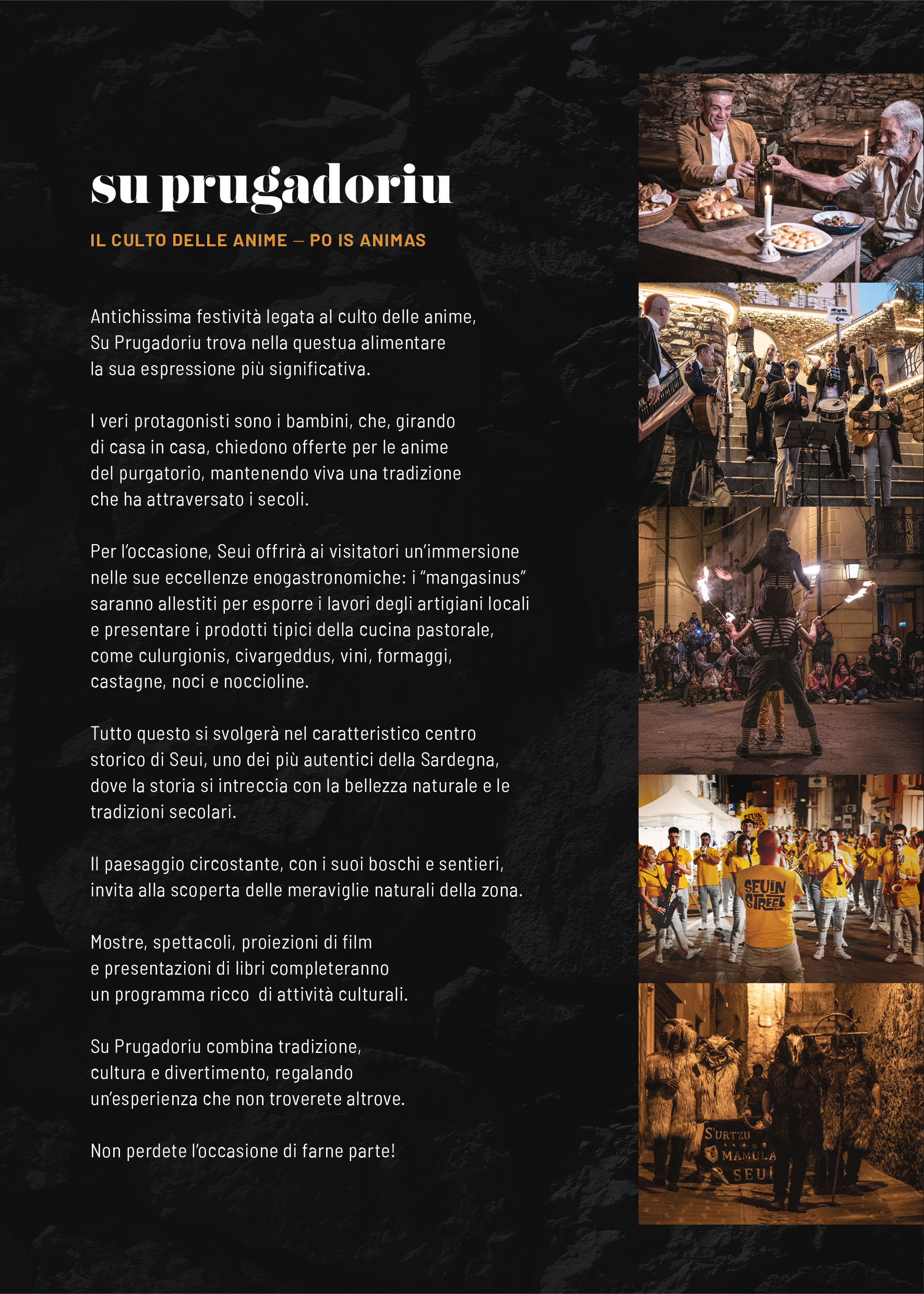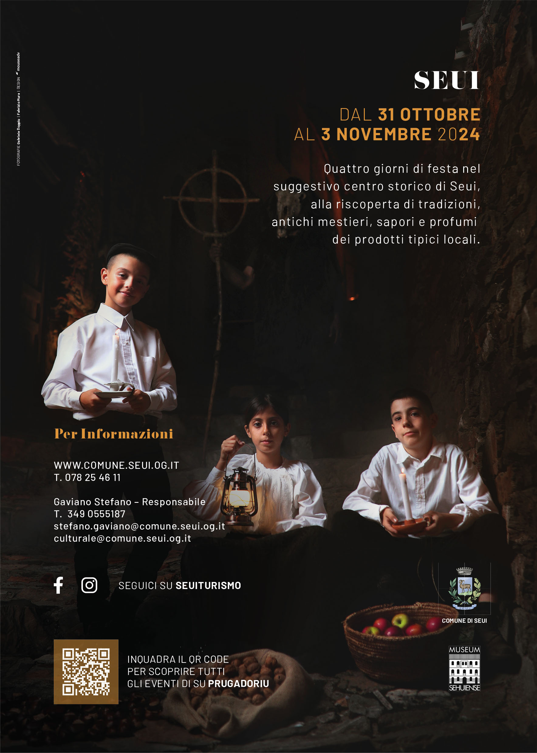 Da giovedì 31 ottobre a domenica 3 novembre, le atmosfere misteriose e inquietanti della notte di Halloween trovano una veste del tutto originale e legata alle antiche tradizioni di un affascinante borgo ogliastrino: a Seui torna per la 28esima edizione “Su Prugadoriu”, la festa po is animas, ovvero per il culto delle anime.