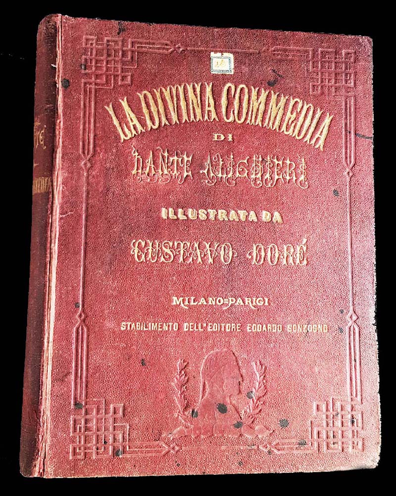 Il volume è arricchito da centinaia di stampe in bianco e nero, eseguite da uno dei più celebri artisti e incisori francesi dell’Ottocento: Gustave Doré. Inoltre, verranno mostrati attraverso immagini e video, alcuni testi dedicati al Sommo Poeta, scritti da studiosi, contemporanei dell’Eroe, che gliene fecero dono inviandone copia sull’isola Nella Casa Bianca è inoltre esposto un dipinto che rappresenta un episodio del Purgatorio dantesco con Virgilio, Dante e Catone l’Uticense nella spiaggia dell’antipurgatorio; l’autore, Antonio Bottazzi, lo donò a Garibaldi nel 1863.