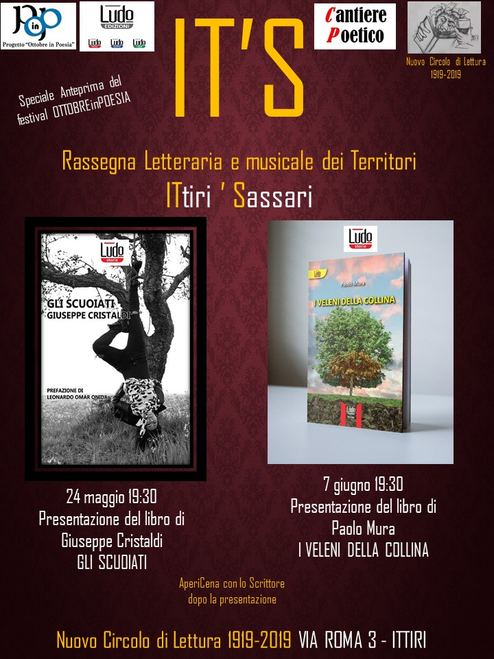 Sassari e Ittiri gemellati in un progetto pilota, come anteprima speciale del festival OTTOBREinPOESIA. Nata dalla collaborazione del PoP di Sassari con il Nuovo Circolo di Lettura 1919-2019 di Ittiri, la rassegna “IT’S – Rassegna Letteraria dei Territori” parte con due importanti incontri con gli scrittori Giuseppe Cristaldi e Paolo Mura.